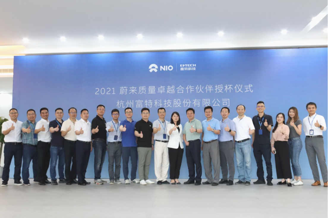 7月9日下午,2021蔚來質量卓越合作伙伴授杯儀式于浙江富特科技股份有限公司安吉工廠舉辦。