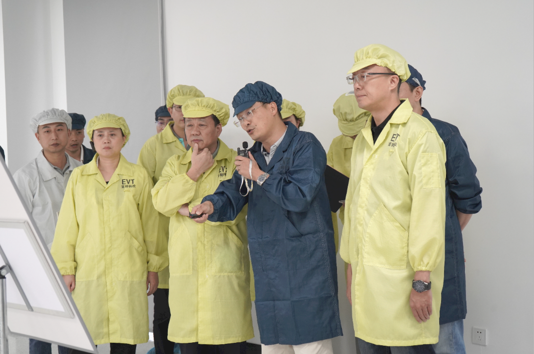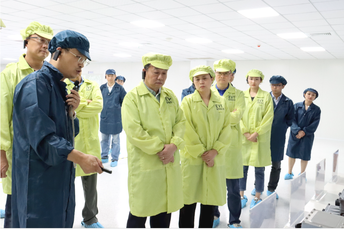 隨后,在現場工作人員的指引下,各位領導、嘉賓分為四個參觀指導小組,按照生產線要求著裝靜電服、佩戴靜電帽、穿戴靜電鞋套,進入產線參觀指導。